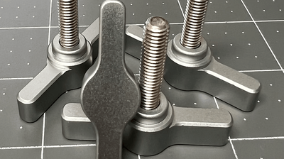 Set of 4 adjustable wingscrews. Except for a small internal 316 stainless steel spring, machined completely from 6Al-4V grade 5 titanium for long term corrosion resistance. Tighten fully by hand and, if the wingnut is not aligned with the water flow, simply lift, twist to align, and drop back down for minimal drag. Available in sizes to fit most masts.